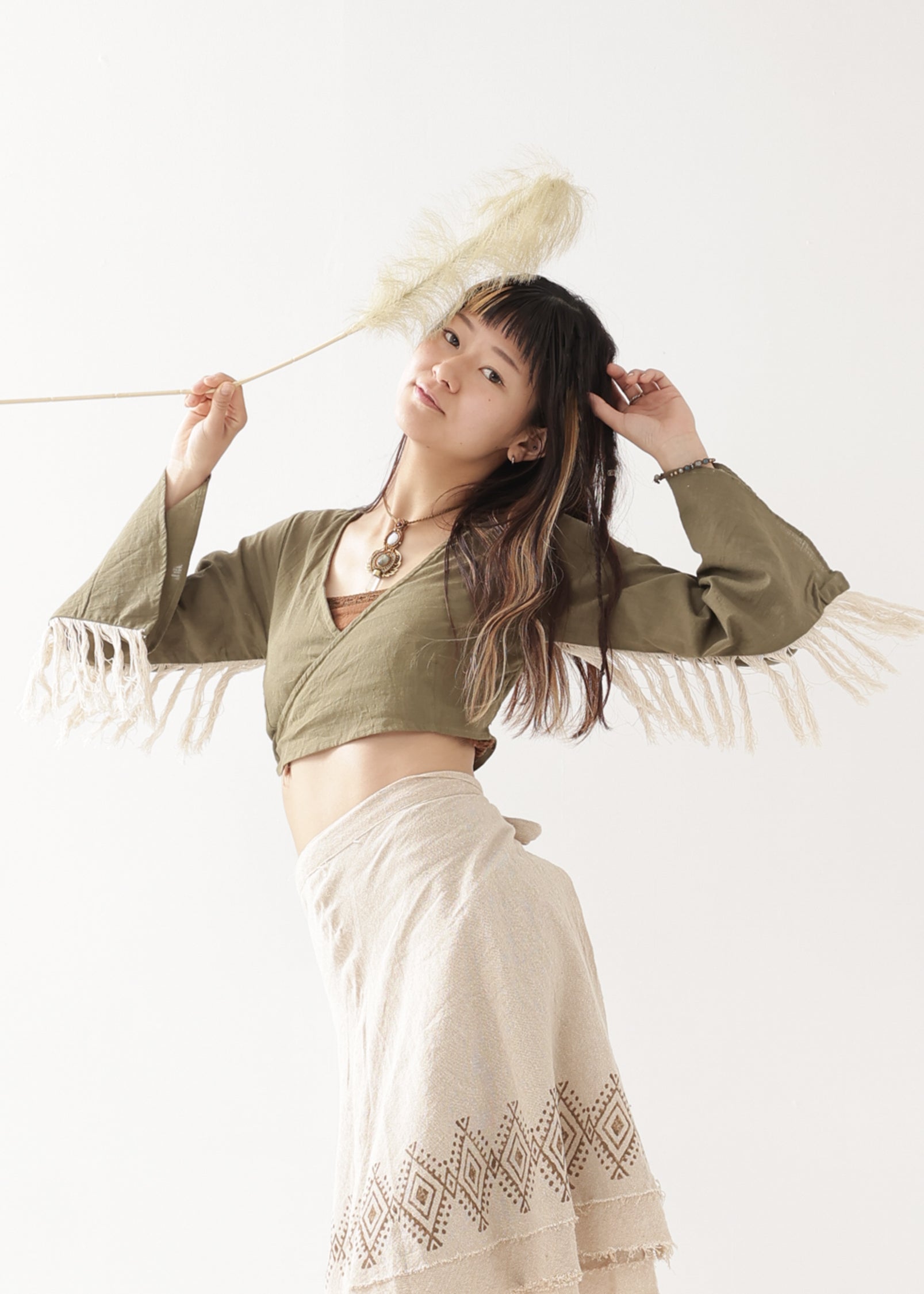 HARVEST カシュクール・フリンジラップトップス